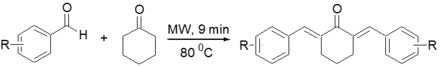 Synthesis of benzylidene-cyclohexanone analogues by microwave irradiation.