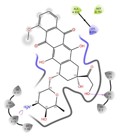 The 2D interaction diagram of Doxorubicin against 4G0V.