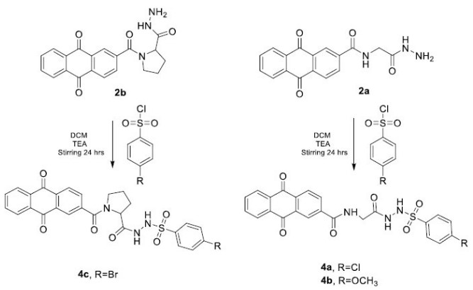 2.5.8. Synthesis of N'-((9, 10-dioxo-9, 10-dihydroanthracene-2-carbonyl) prolyl)-4-bromobenzenesulfonohydrazide (4c) [31, 33]
