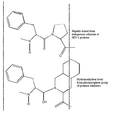 Mimetic action of hydroxyethylene bond from active group of peptidic protease inhibitor with normal peptide linkage cleaved by the human immunodeficiency virus protease.
