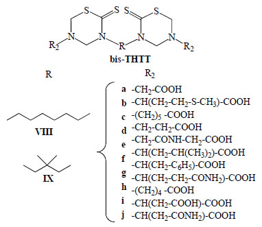 2.2. Alkyl-linked bis-(2-thioxo-[1,3,5] thiadiazinan-3-yl) carboxylic acids (bis-THTT)