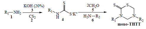 2.1. 3,5 disubstituted-tetrahydro-2H-1,3,5-thiadiazine-2-thione (Mono-THTT)